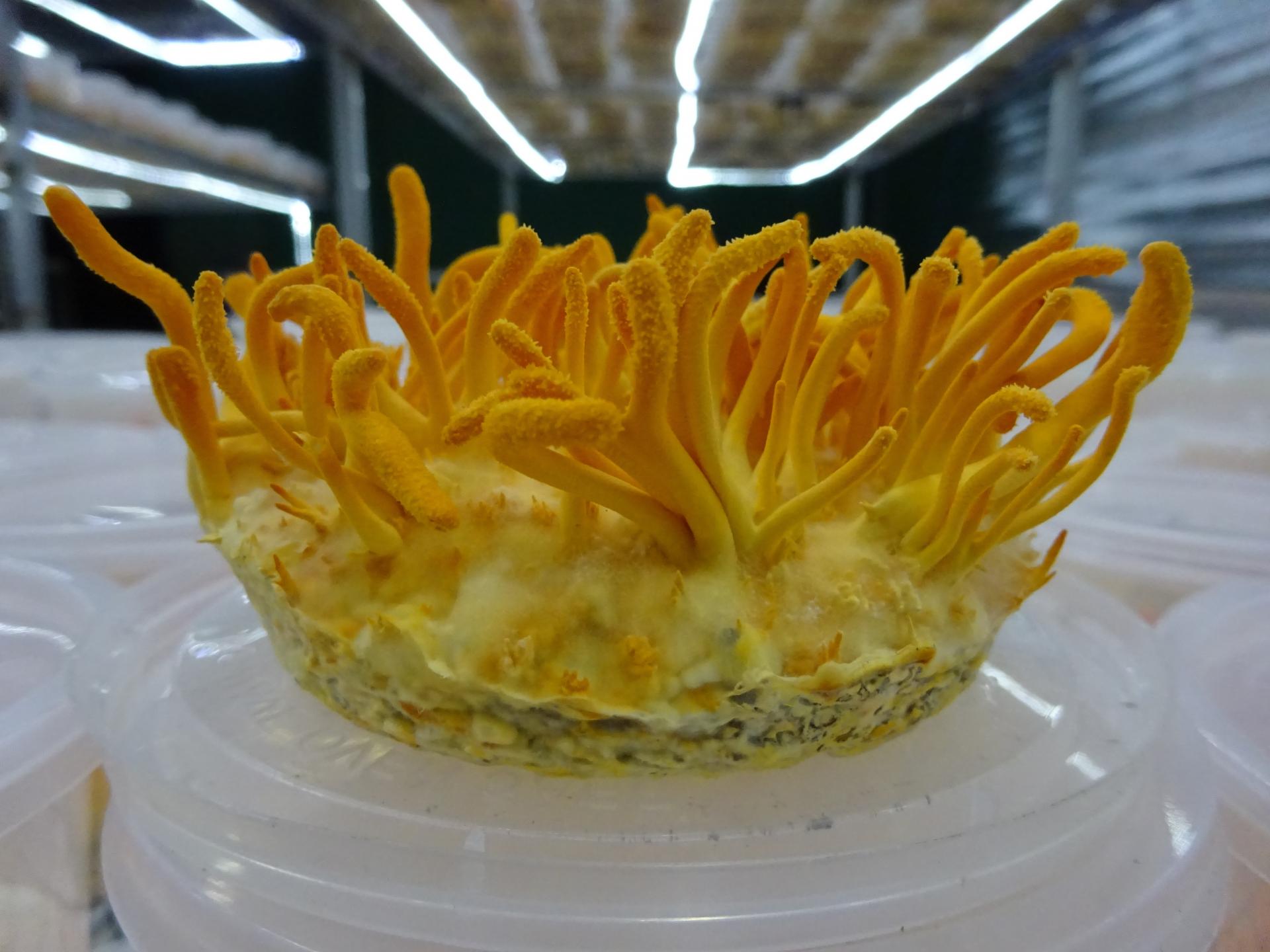 Đông trùng hạ thảo có hơn 500 loài nhưng được nuôi trồng công nghiệp thường là loài Cordyceps militaris. Đây là chủng cho hàm lượng Cordycepin cao nhất. Cordycepin là một chất tương tự nucleoside có các hoạt tính sinh học bao gồm kháng khuẩn, kháng nấm, kháng u, hoạt động kháng virus, ngăn ngừa bệnh xơ vữa động mạch vành. Ngoài Cordycepin, một số hoạt chất chứa dược tính quan trọng nữa có trong Đông trùng hạ thảo đó là Adernosin, Mannitol và Superoxide dismutise. Adenosine được cho là có tác dụng điều hòa miễn dịch, bảo vệ tim mạch. Mannitol của Cordyceps militaris cũng có chức năng hoạt tính sinh học, lợi tiểu, chống các chứng ho ra máu. Superoxide dismutise để phòng ngừa và điều trị xuất huyết não, viêm loét, loại bỏ tình trạng viêm, loạn nhịp tim, phù nề, nhiễm độc, bệnh thấp khớp, viêm khớp dạng thấp, tổn thương bức xạ. Bên cạnh đó, Cordyceps militaris còn chứa nhiều loại như vitamin B12; vitamin A; vitamin C, và cả protein.