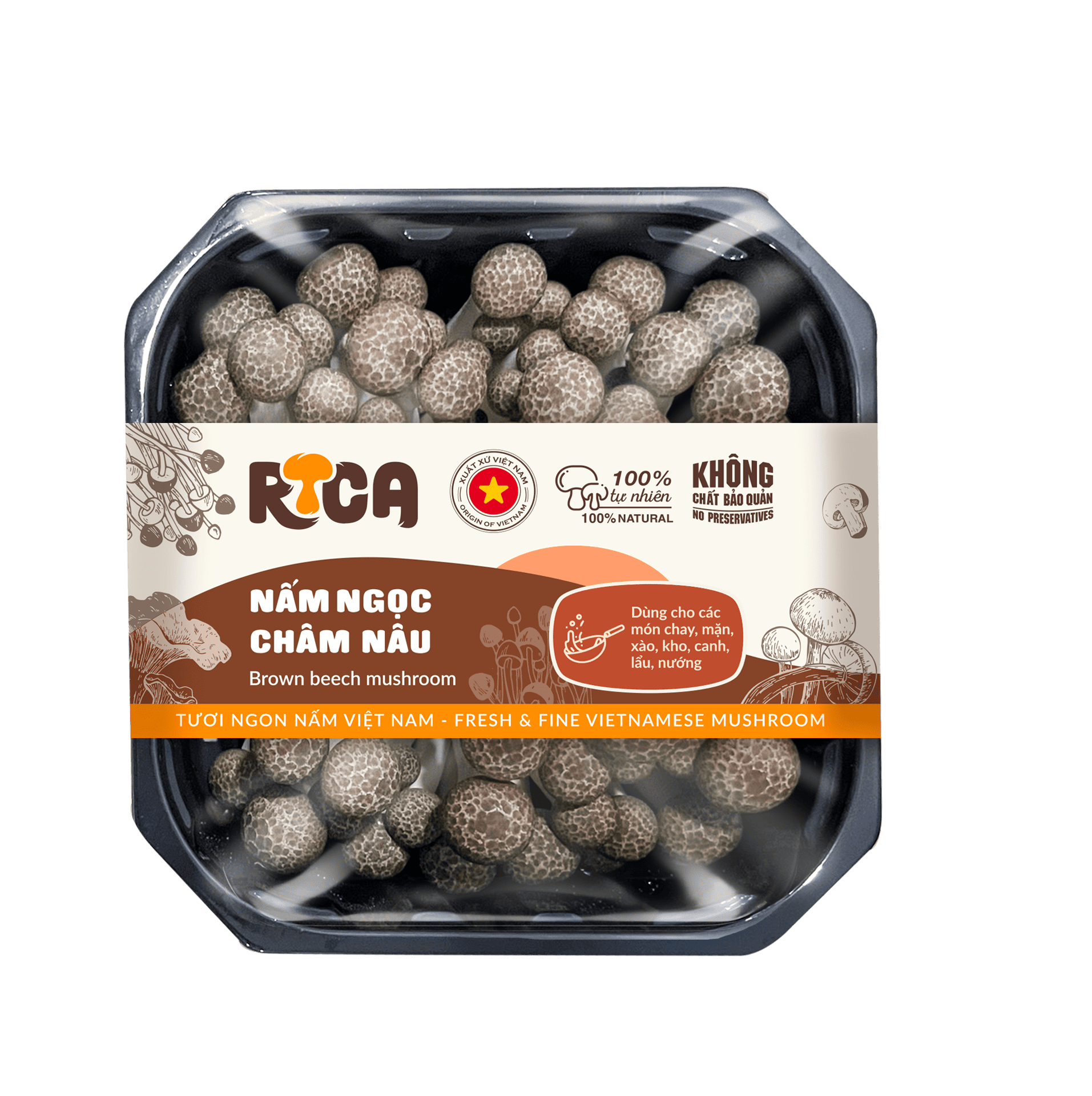 Giới thiệu: Nấm Ngọc châm nâu (hay còn gọi là nấm hải sản)tên khoa học là Hypsizigus marmoteus H.E. Bigelow là tên của giống nấm Ngọc châm từ Nhật Bản. Nó thường sinh trưởng trên các cây họ lá rộng trong giới tự nhiên. Nấm ngọc châm nâu được nhập giống về và nuôi trồng theo công nghệ Hàn Quốc tại Việt Nam.Có thể nhận biết nấm ngọc châm nâuquathân cây to, màu trắng ngọc, có loại thì màu nâu xám, cuống màu trắng hoặc nâu, cao từ 4-8 cm, mũ nấm nhỏ, bề mặt mũ có vân đá. Nấm Ngọc Châm mọc thành chùm với nhau.Được nuôi trồng tốt nhất vào mùa đông từ tháng 12 đến tháng 3 dương lịch năm sau.Trong điều kiện công nghiệp có nhà lạnh sẽ được nuôi trồng quanh năm.Nguyên liệu nuôi trồng nấm được lấy từ nguồn phế thải từ nông nghiệp như mùn cưa, rơm rạ, bông phế thải.